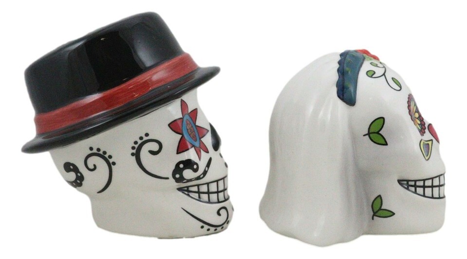 - Bridal Wedding Couple Sugar Skulls Day Of The Dead Salt And Pepper Shakers Set