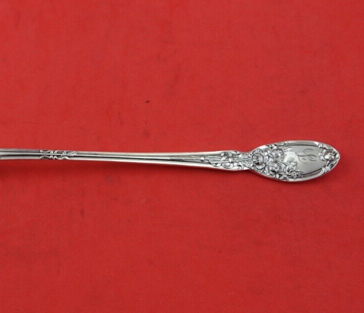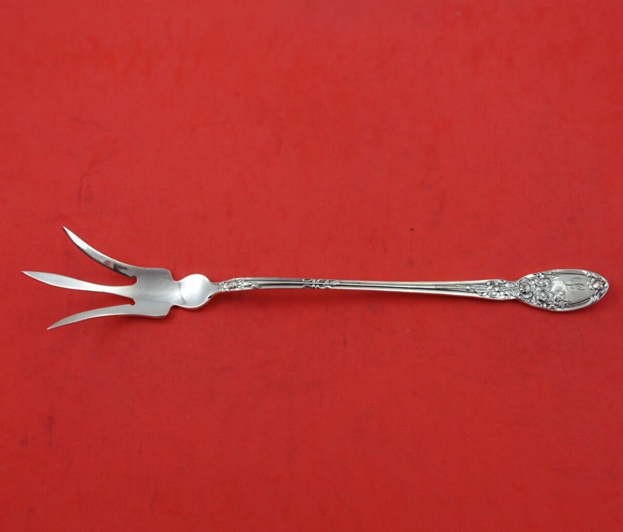 Silverplate Lettuce Fork 9" in the pattern Brides Bouquet by Alvin. It is monogrammed (monos vary) and is in very good, clean condition.