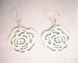 - BRIGHT WHITE OPEN ROSE CUT OUT GARDEN FLOWER WOODEN CHARM DROP EARRINGS