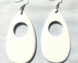 LARGE WOOD ARCTIC WHITE HAND PAINTED TEARDROP SHAPED WITH A PEEK-A-BOO HOLE IN THE CENTER DANGLING EARRINGS - NOT TOO HEAVY....LIGHTWEIGHT