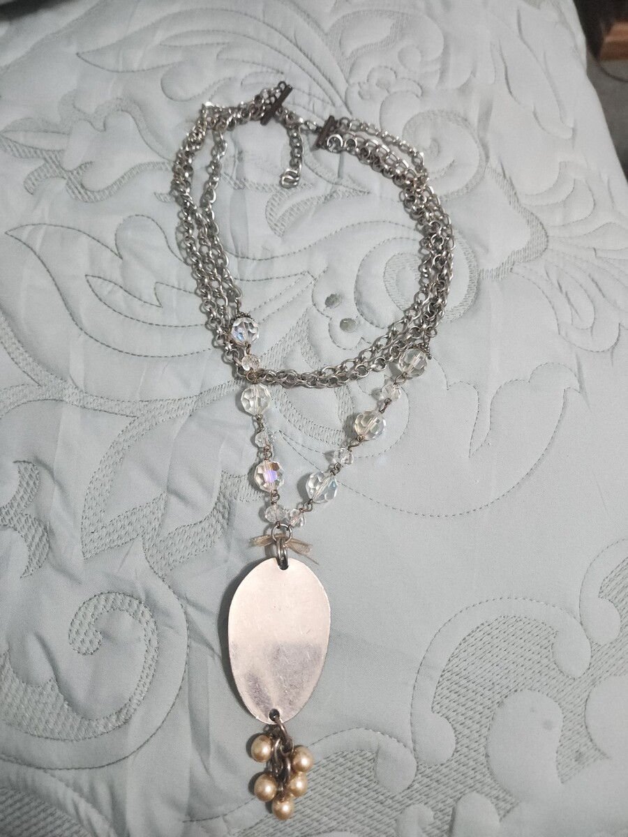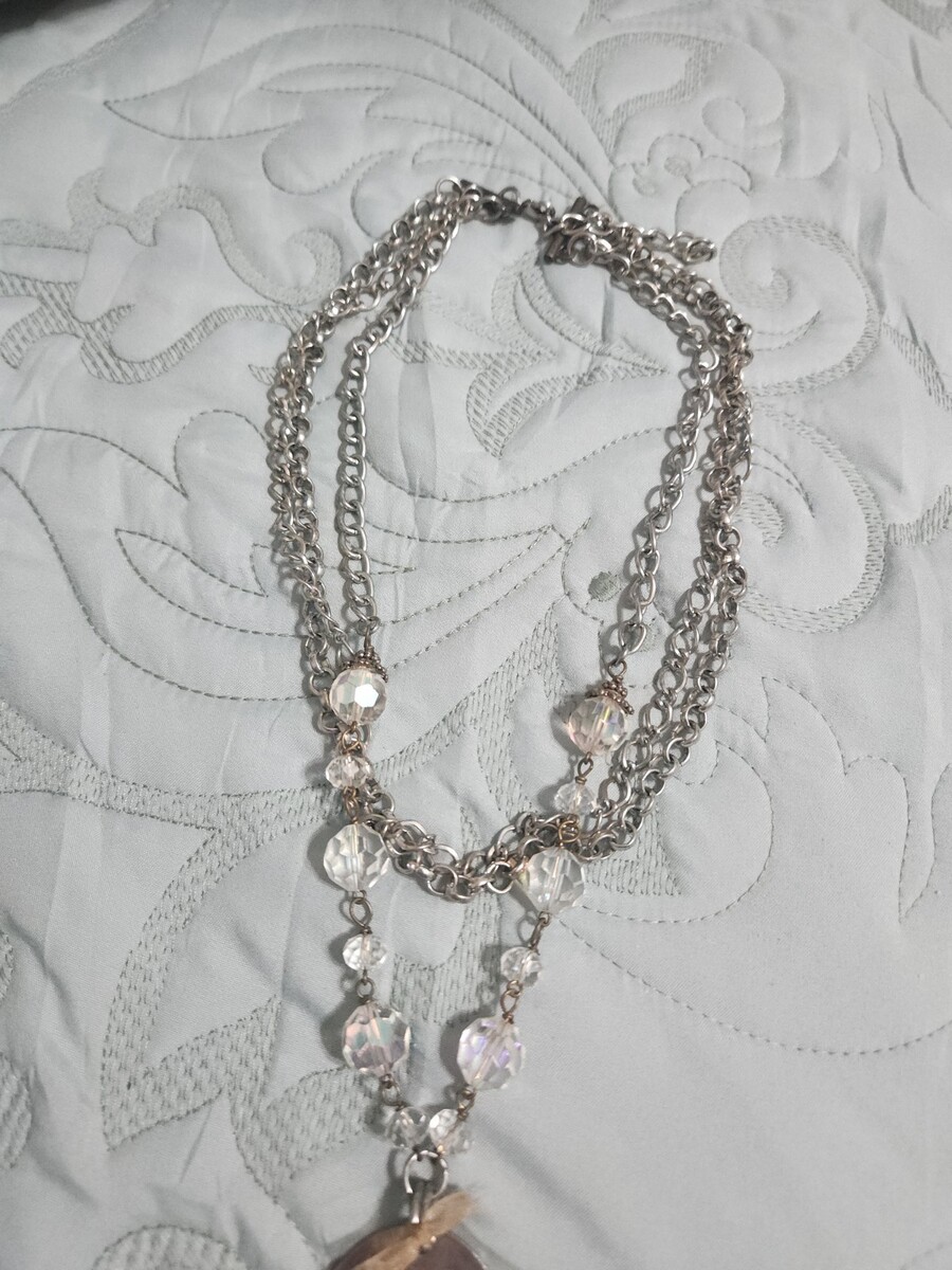 Brighton "Original B" Silver Tone Charm Pendant 3 Chain Necklace Beads and crystals.. Measures approximately 24? long. Good condition.