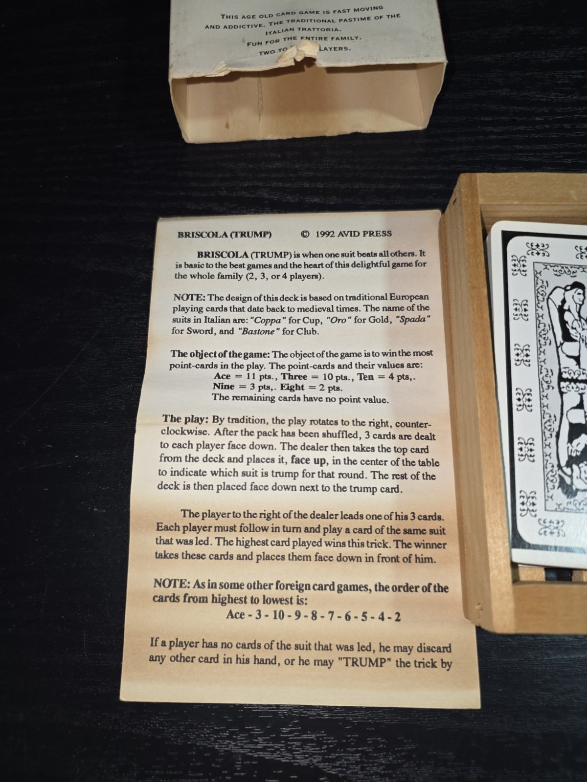 - Briscola Trump Italian Classic Card Game Wood Cradle Complete With Instructions