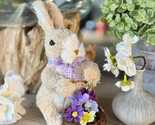 Bristle Bunny with Purple Ribbon and Spring Flower Basket