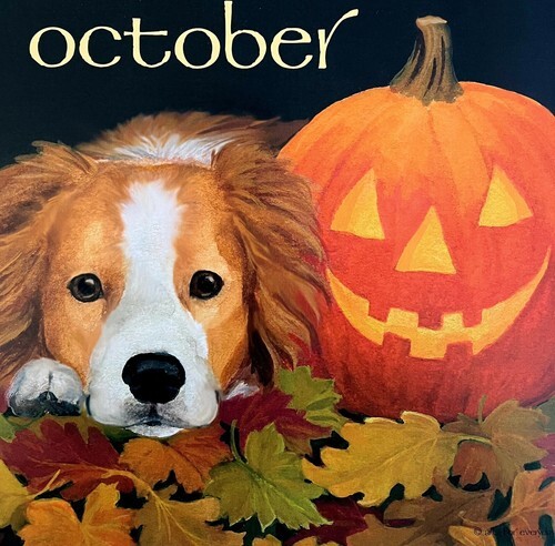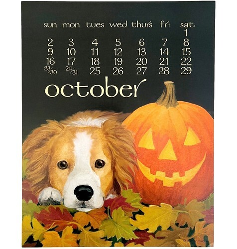 Brittany October Halloween Pumpkin Dog Days Poster Calendar 14 x 11" DWDDCal