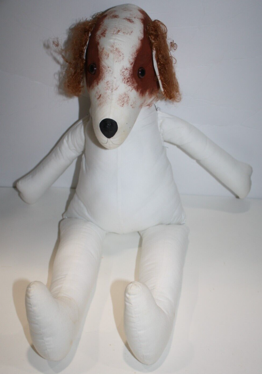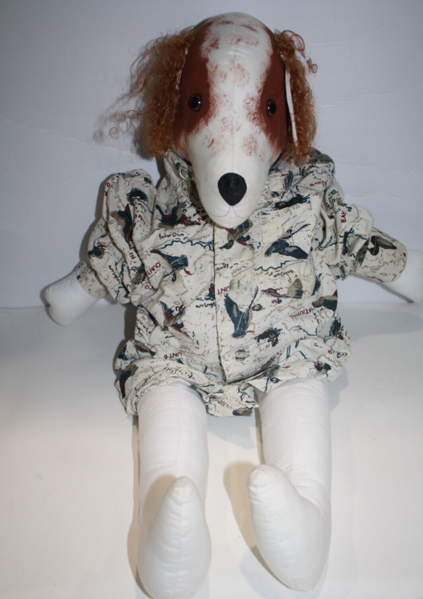 - Brittany Spaniel Dog Cloth Plush Handmade 26" Wears Toddler Clothes Signed 2001