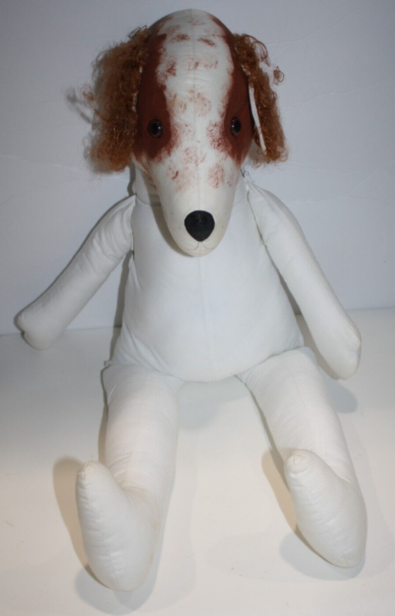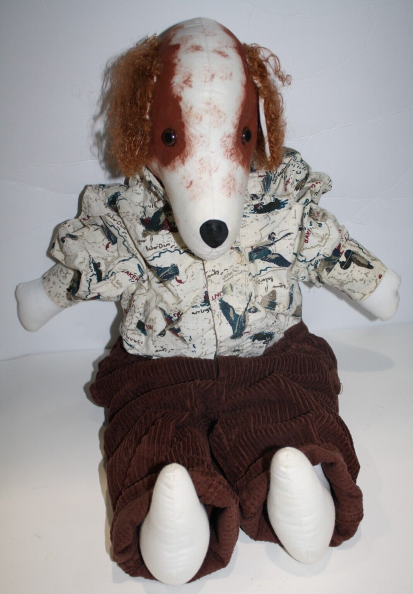 Brittany Spaniel Dog Cloth Plush Handmade Approx 26" tall, Wears Toddler Clothes, Signed 2001