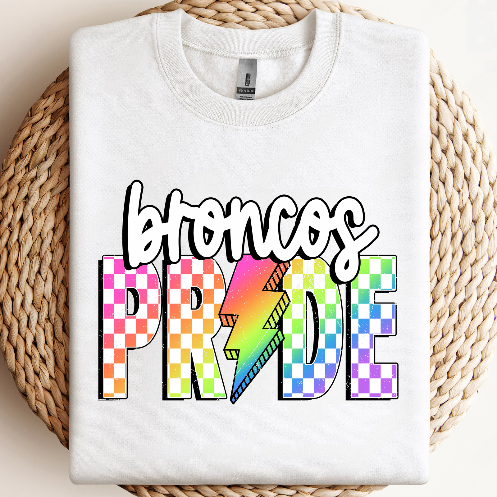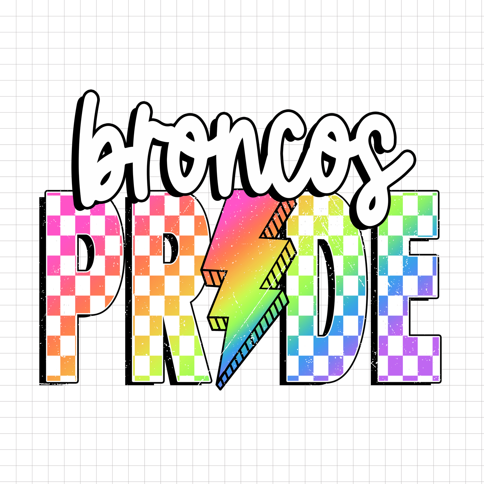 Broncos Pride PNG, Checkered Broncos PNG, Lightning Bolt Design, Neon Mascot PNG