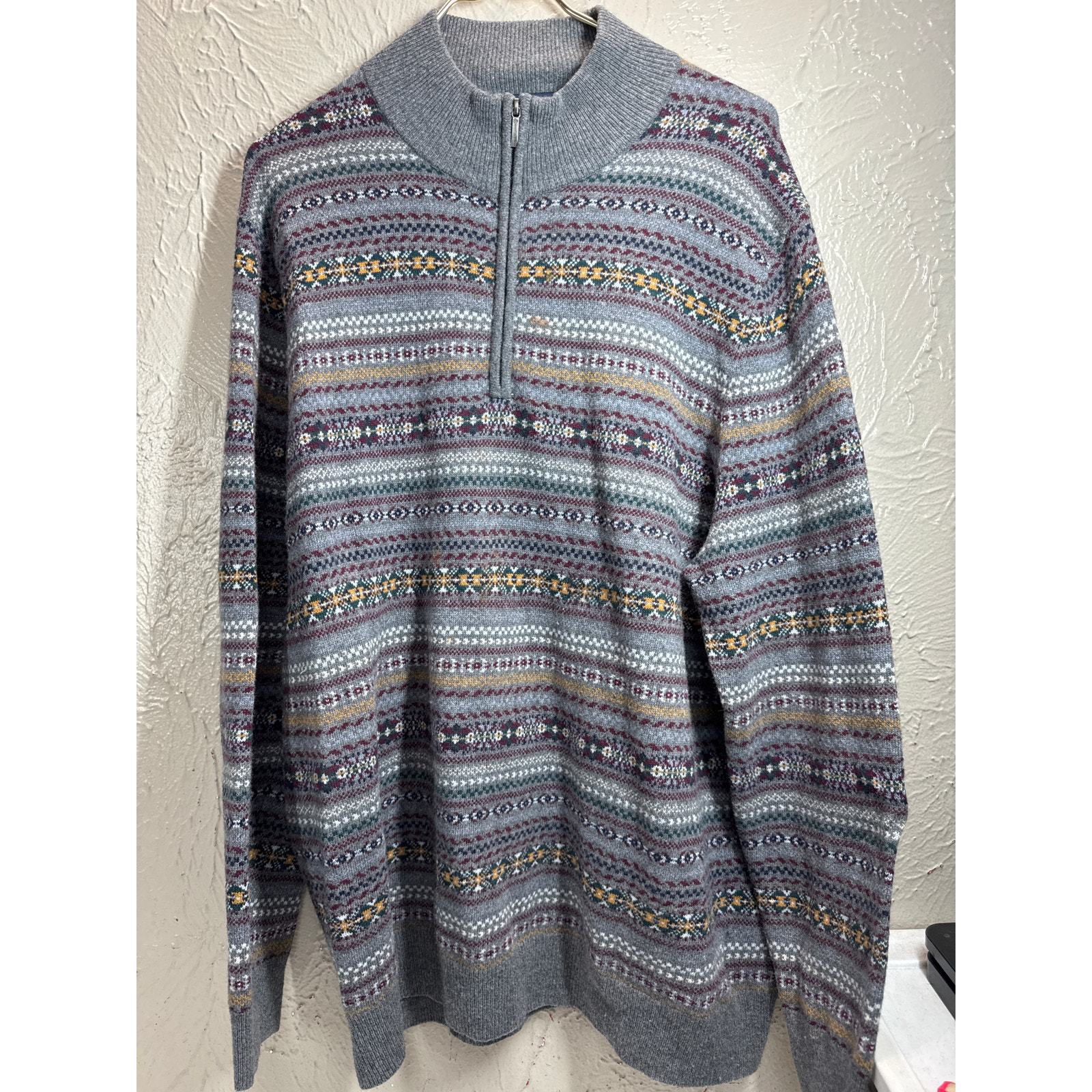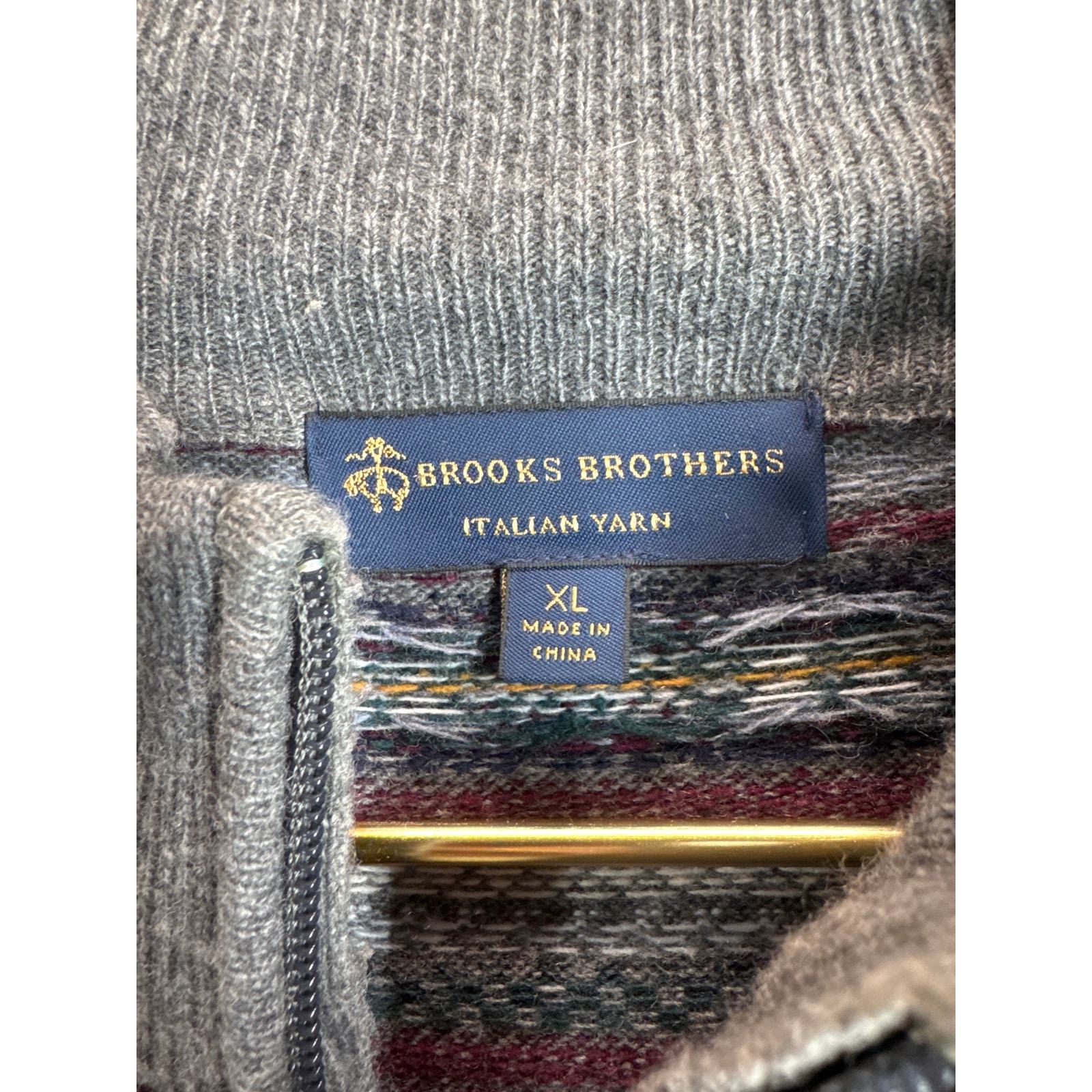 - Brooks Brothers Sweater Mens Gray Fair Isle Wool Italian Yarn 1/4 Zip Size XL