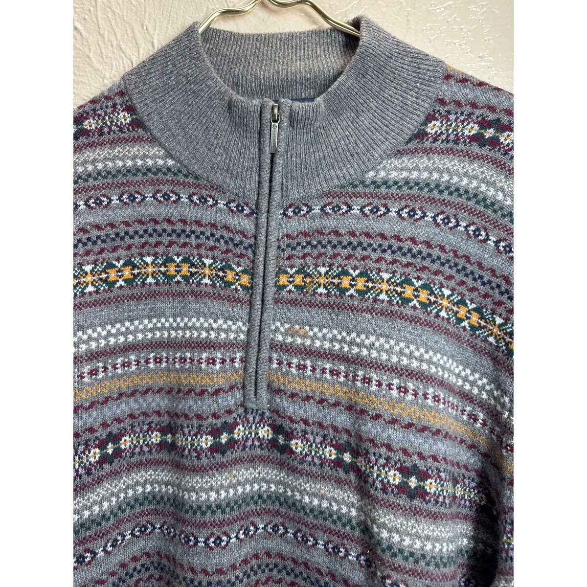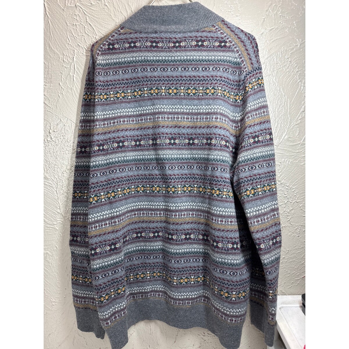 - Brooks Brothers Sweater Mens Gray Fair Isle Wool Italian Yarn 1/4 Zip Size XL