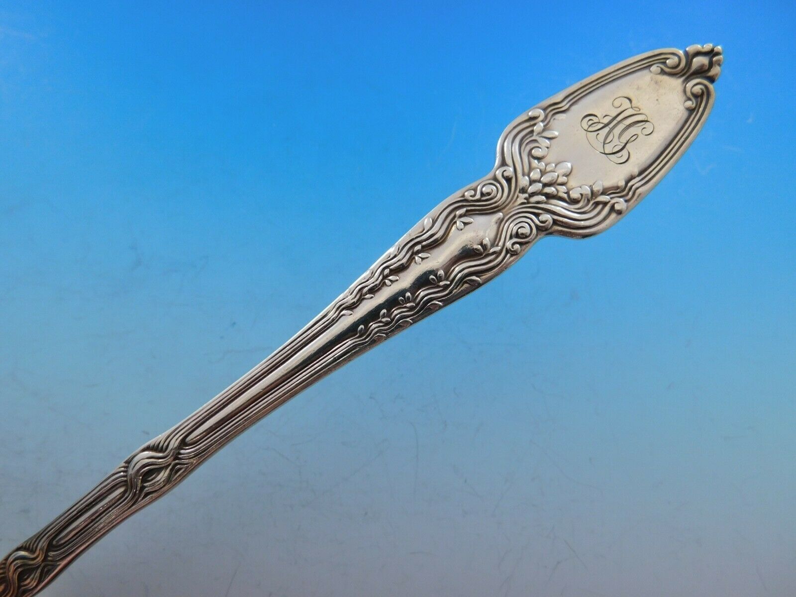 Sterling silver Salad Serving Set, 2-piece, light gold-washed, 10 1/4" in the pattern Broom Corn by Tiffany and Co. It is monogrammed (monograms vary) and is in excellent condition.