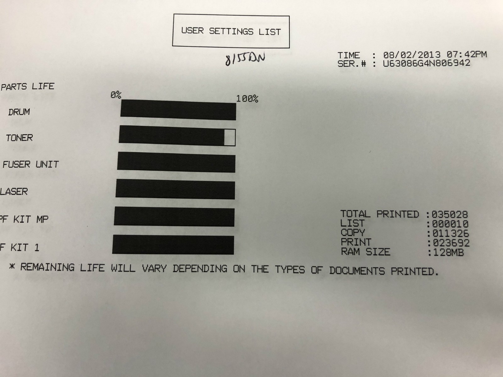 This printer was pulled from a working, professional environment. It prints a great test print! We just refurbished the fuser!