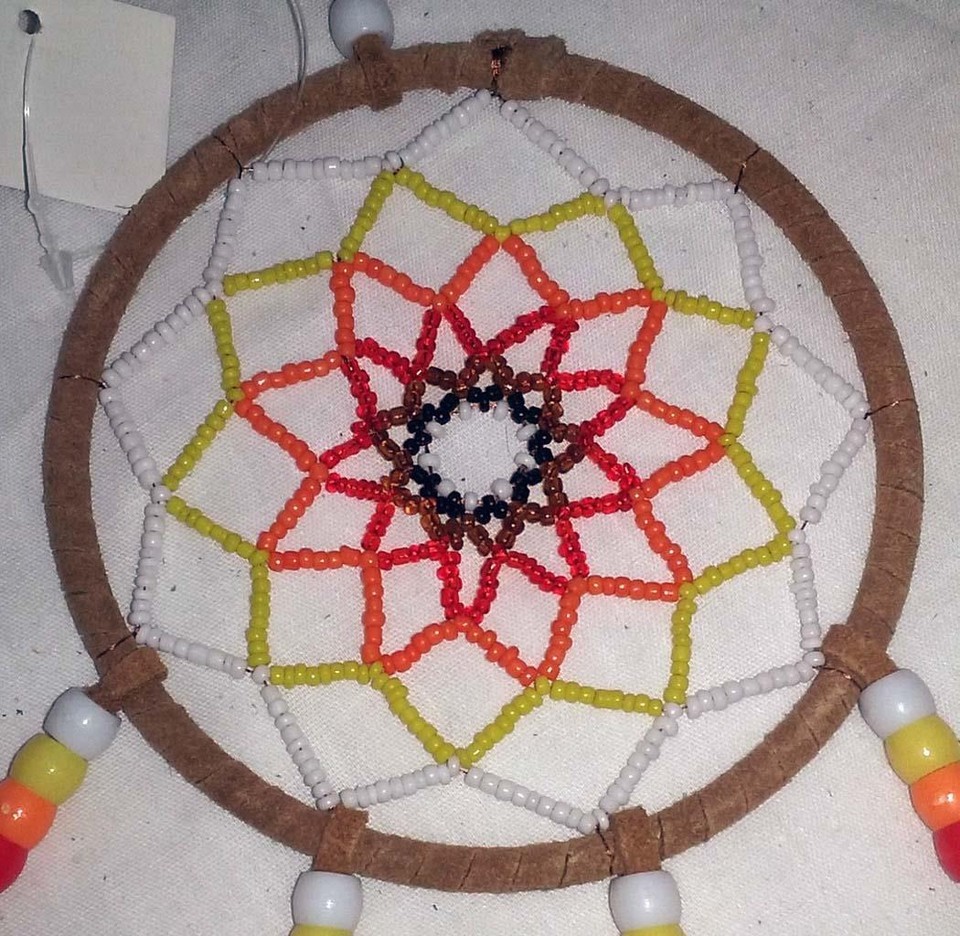 BROWN 20 INCH SEED BEAD HAND BEADED DREAM CATCHER feathers dreamcatcher handmade