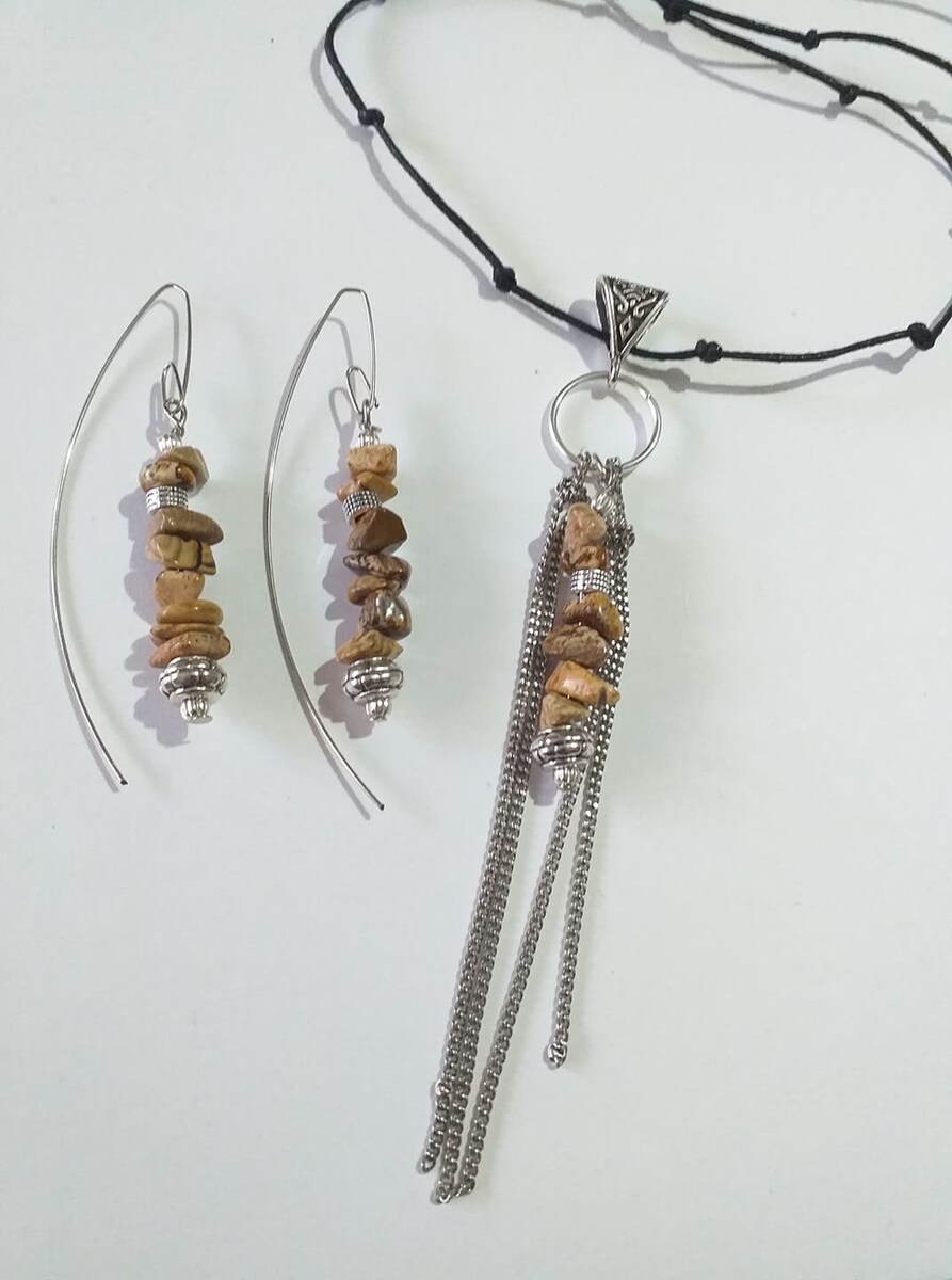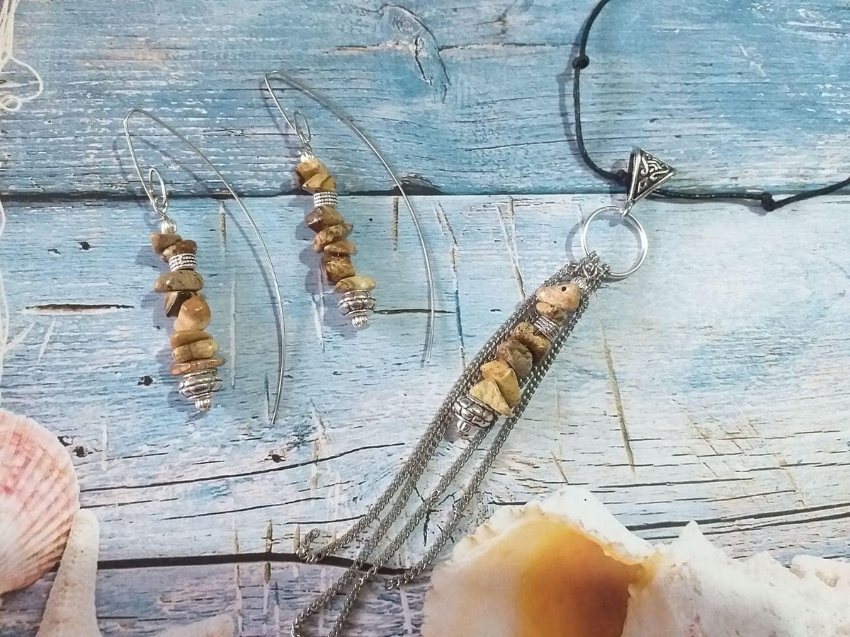 Brown Jasper Boho jewelry set necklace and earrings . Bohemian jewelry set necklace and earrings .