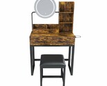 Brown MDF Makeup Vanity Table, LED Lights (3 Colors), w/Power Outlet
