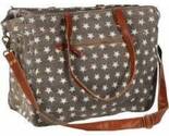 Stay on trend with this slouchy canvas bag with a star print and brown handles.