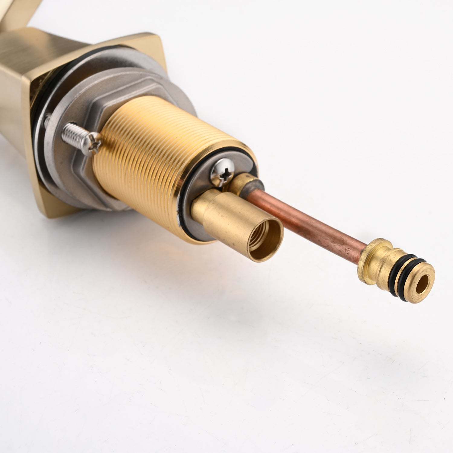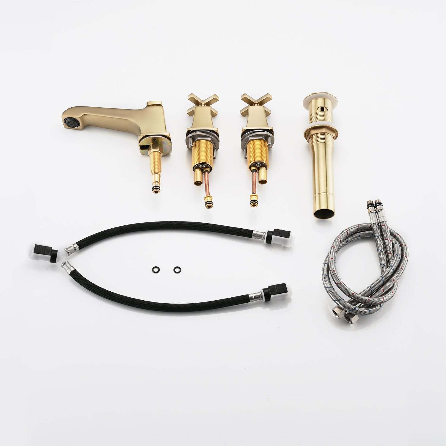 The 2 handles are connected with the hot and cold water pipes respectively to control the temperature and flow accurately.