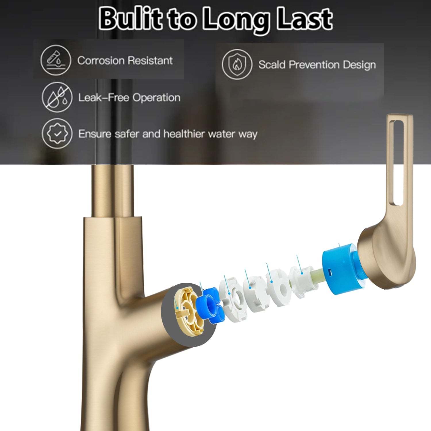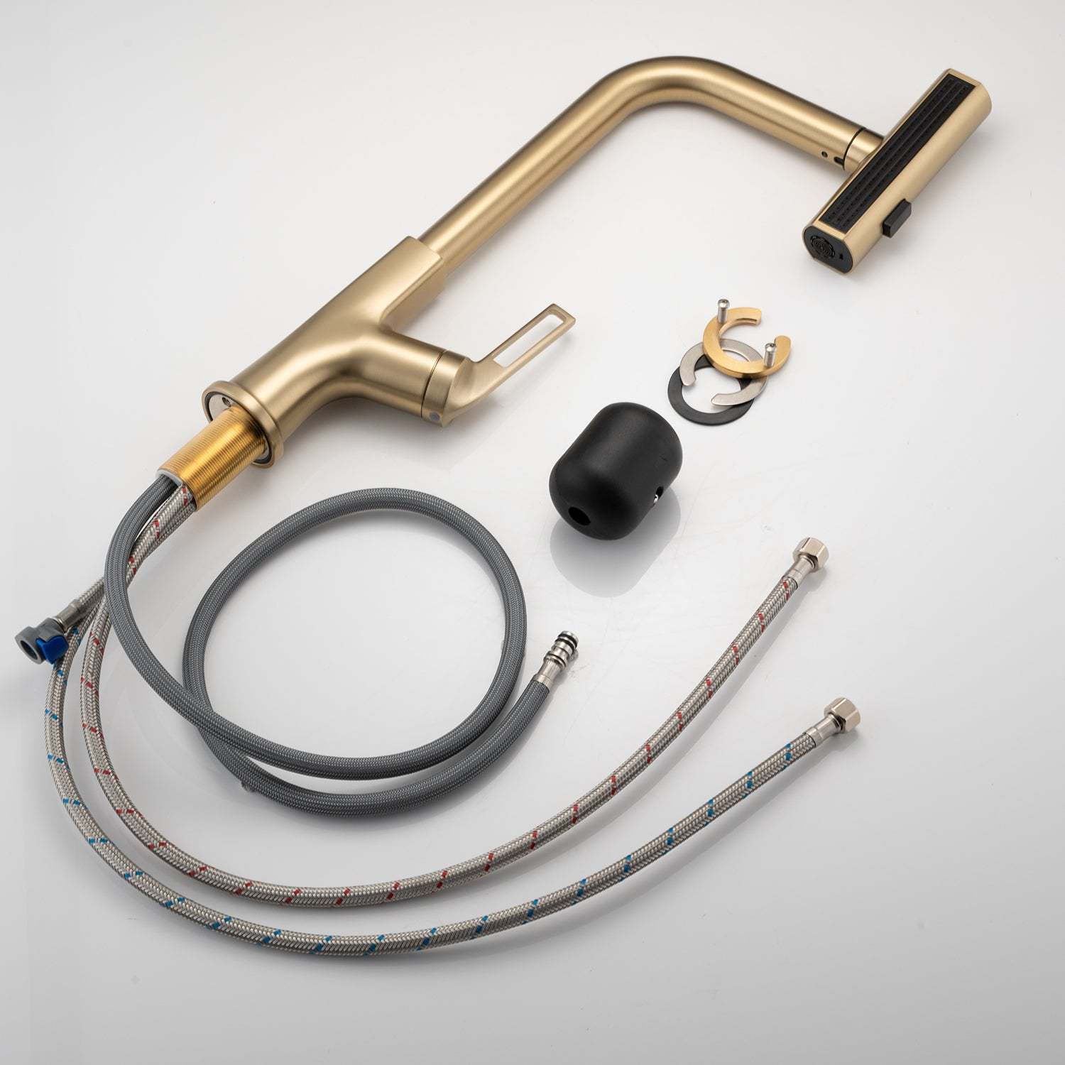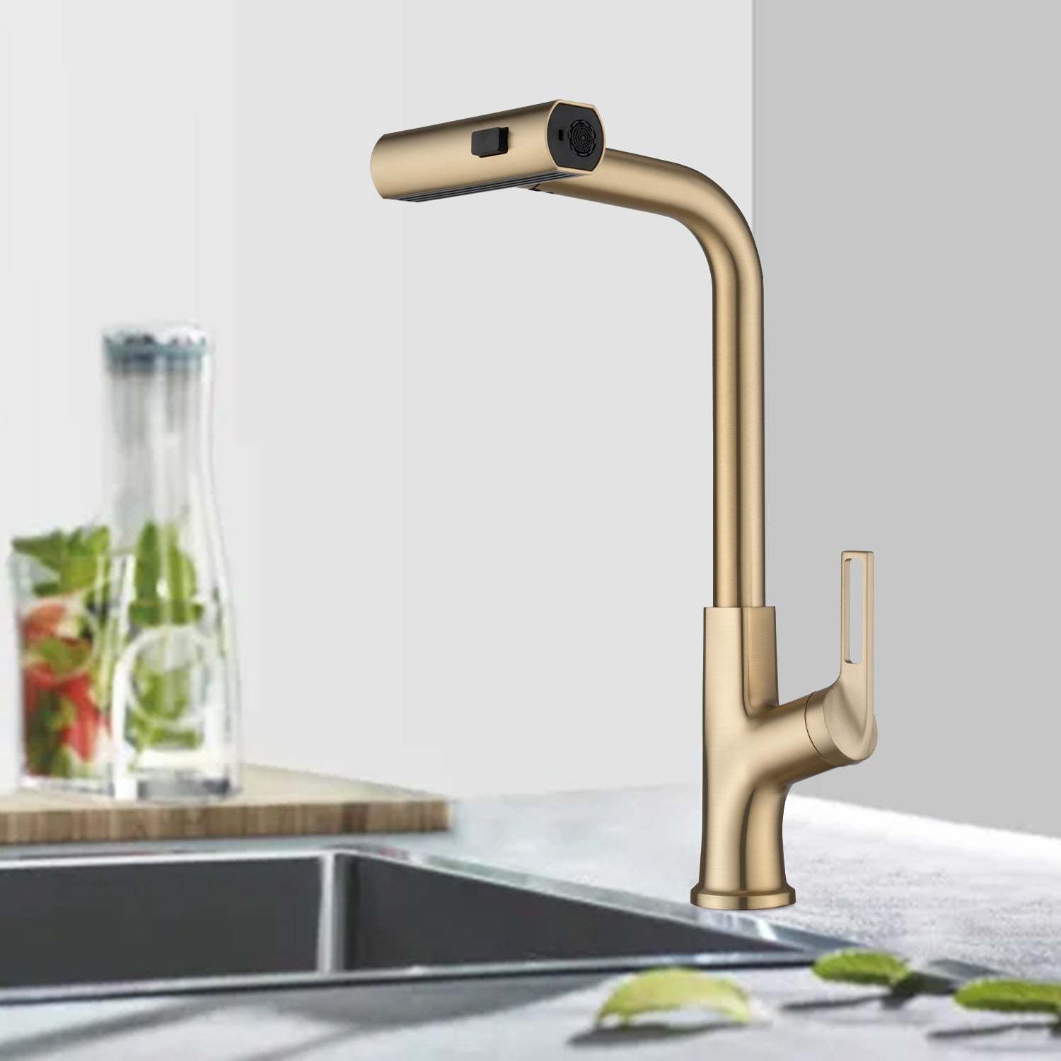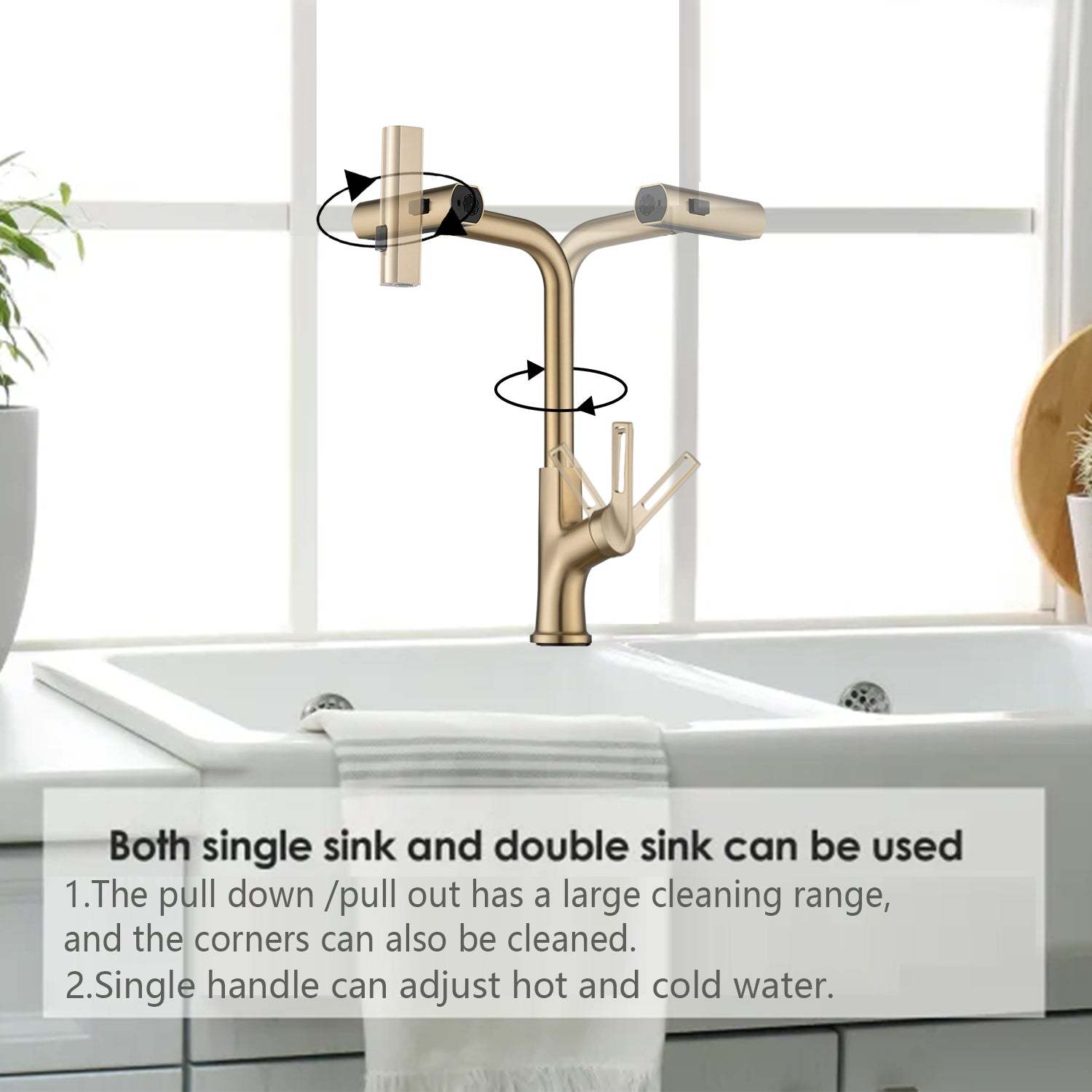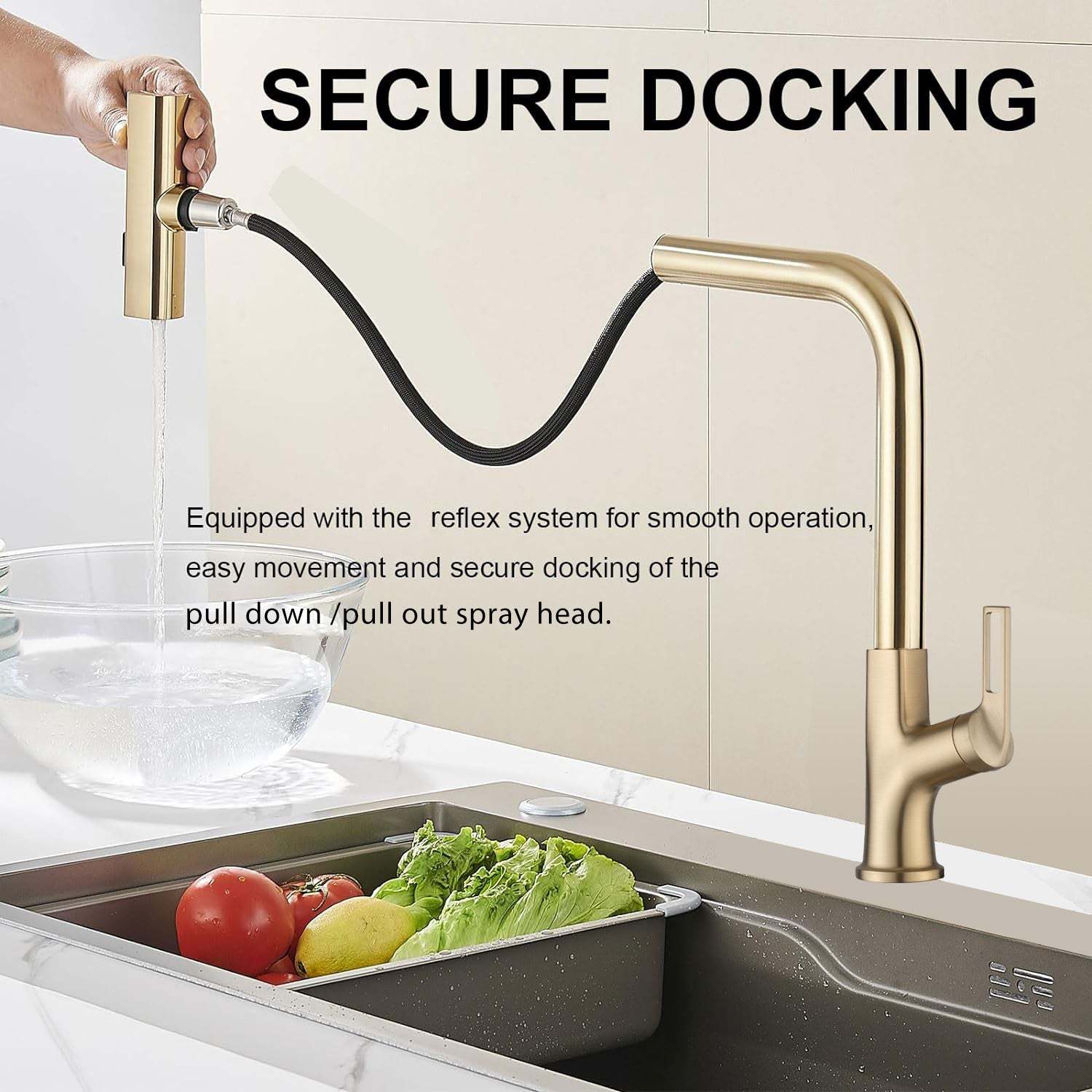 Brushed Gold Kitchen Faucet: Pull-Down Sprayer