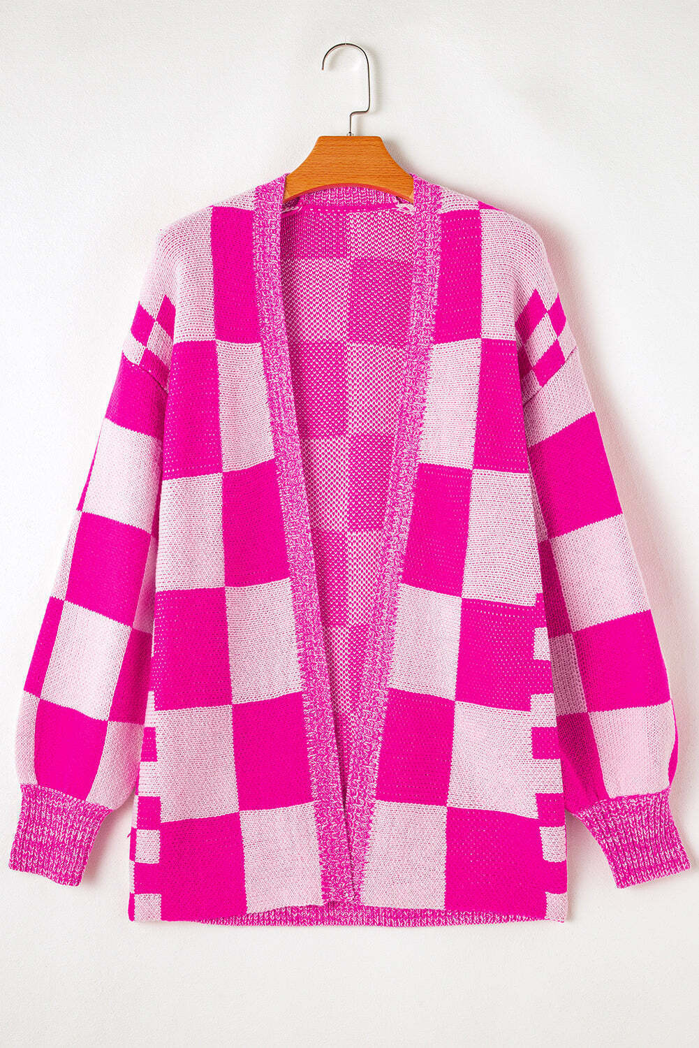 Add some oh-so-chic vibes to your wardrobe with this checkered cardigan that's sure to turn heads. Keep warm and fashionable in this printed cardigan featuring a trendy ribbed trim. Simply amp up any outfit with its open front design.