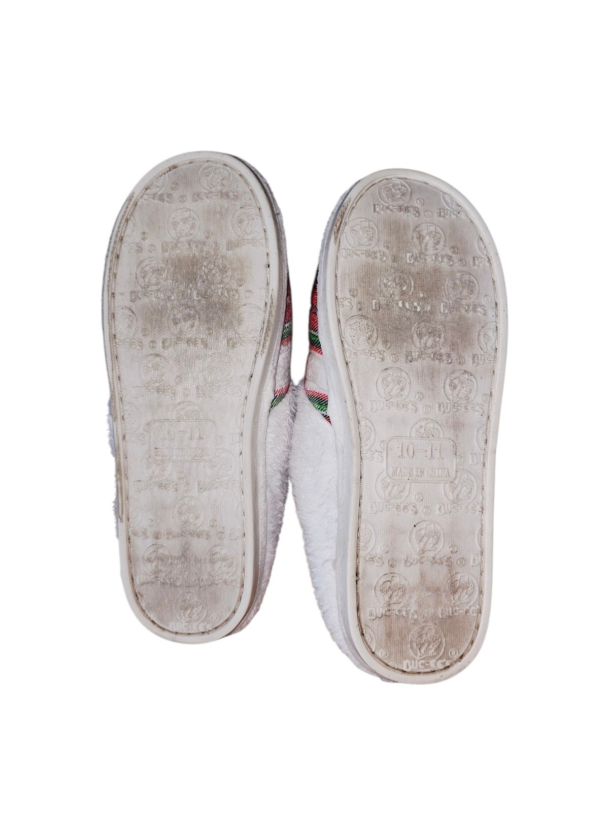 The Buc-ee's Limited Edition Christmas Plaid Slippers are stylish and comfortable slippers perfect for the holiday season. Featuring a festive plaid pattern with embroidered patches, these unisex slippers are sure to add a touch of Christmas cheer to your casual or travel outfits. With a cozy faux fur lining and fleece fabric type, these slip-on slippers have a flat heel height for all-day comfort. Designed with a non-slip sole, these multicolor slippers are a must-have for anyone looking to add a touch of designer flair to their loungewear collection.