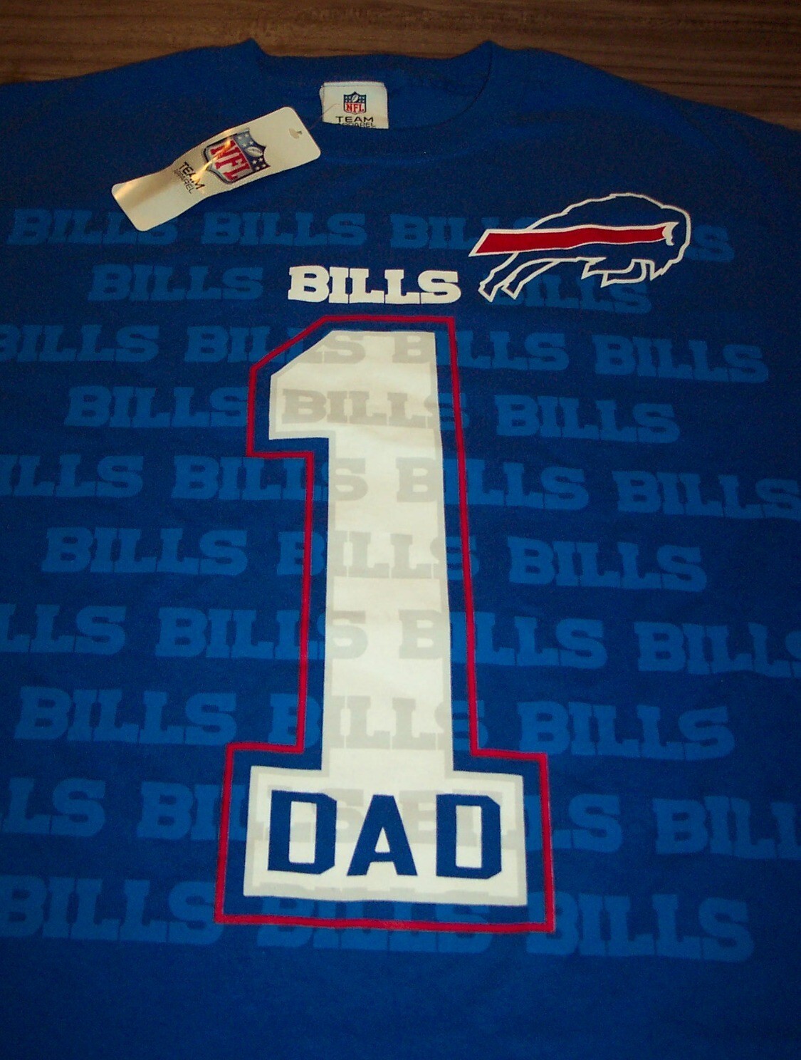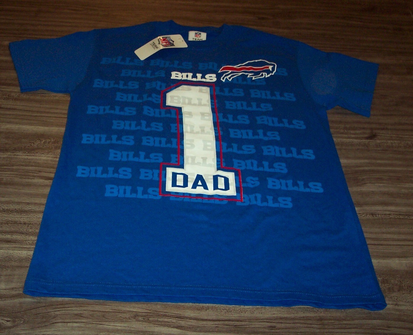 This is a BUFFALO BILLS #1 DAD NFL FOOTBALL T-Shirt. It is a size MEDIUM, and it is NEW with the tag. It is 19 1/2 inches from armpit to armpit and 29 inches in length. It is an official NFL TEAM APPAREL Shirt. Combine auctions to save on shipping. D3AG DJ ~~~~~~~~~~~SMOKE FREE HOME!!~~~~~~~~~~~