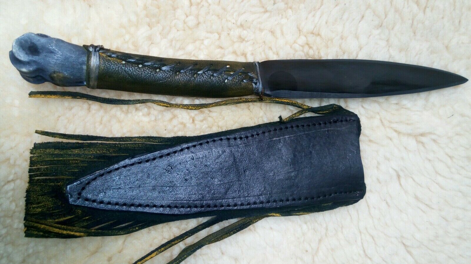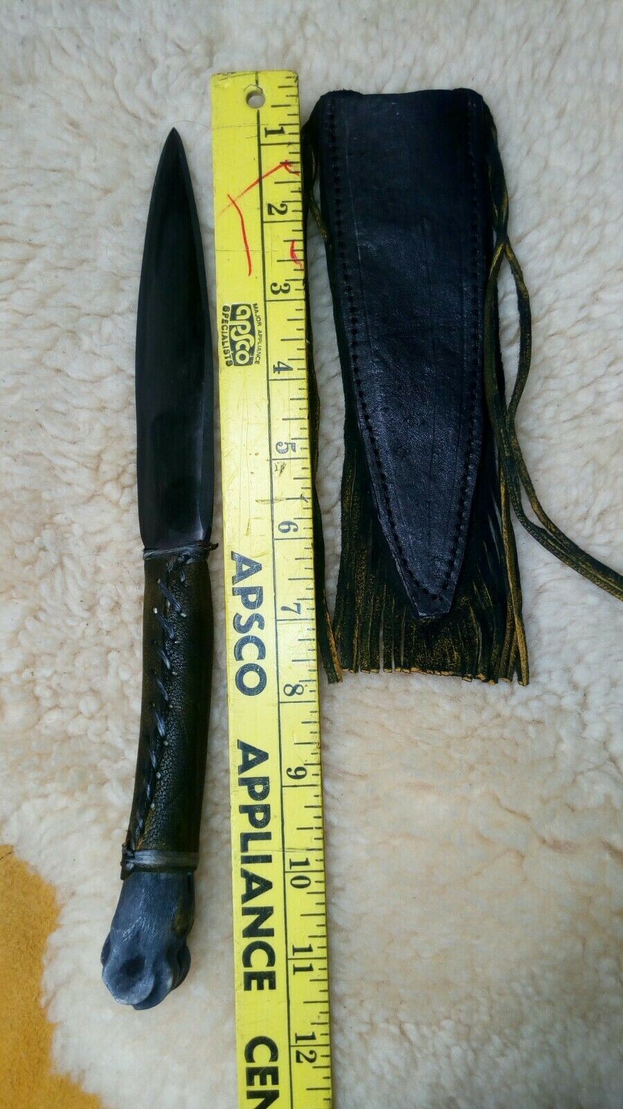 Buffalo horn blade and Deer Leg  handle Knife Powwow Reenactment Black Powder