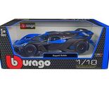 Bugatti Bolide 1:18 Diecast Model Car by Bburago ? a striking blue and carbon gray collectible that brings automotive excellence to your display. This officially licensed 1:18 scale diecast captures the iconic lines and meticulous details of the Bugatti Bolide, making it a premium centerpiece for any car enthusiast.