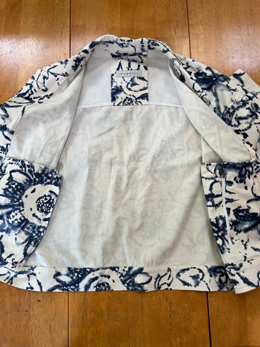 - Bugatti Italian Short Denim Bomber Jacket Navy Boho Chic Pockets Cotton, Size M
