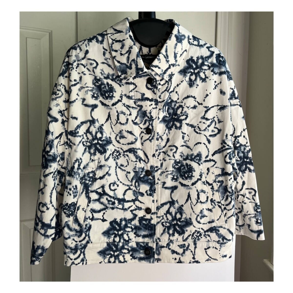 Bugatti Italian Short Denim Bomber Jacket Navy Boho Chic Pockets Cotton, Size M