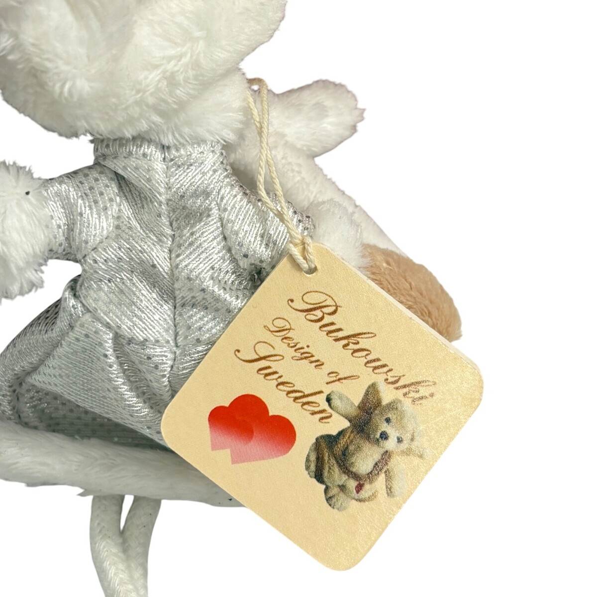 This whimsical ice-skating bear ornament brings the charm of a winter wonderland to your decor. Crafted with glittering skates and a cozy outfit, it tells a tale of frosty adventures. Its long legs add a playful touch, making it a delightful addition to your seasonal collection. ? Plush material with a soft touch ? Silver and white attire for a wintery look ? Glittery skates for a festive sparkle ? Tag shows authenticity from Bukowski Design ? Lightweight and easy to hang Top to bottom = 9 inches Features: ? Winter ? Textured ? Sweden ? Spot Clean Only Condition: New With Tags