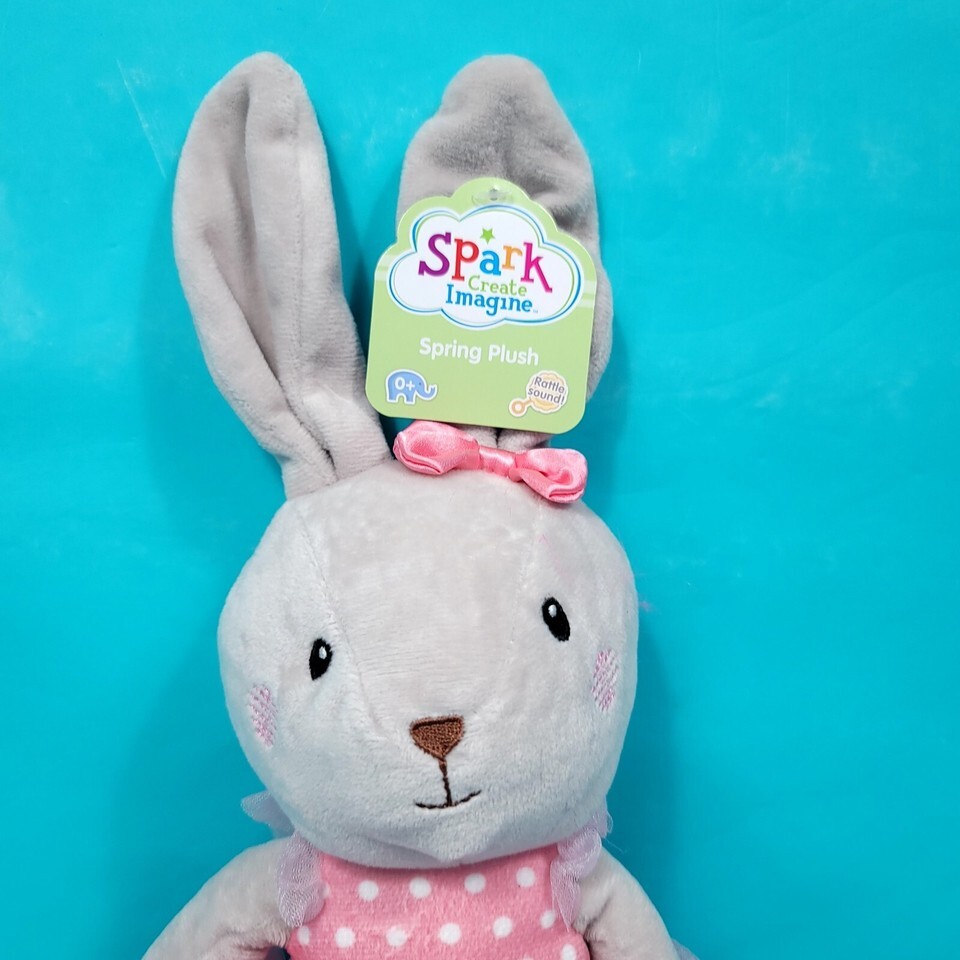 - Bunny Rabbit Pink Grey Plush Polka Dot Dress Easter Ballerina Stuffed Animal 20"