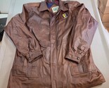 Primary image for Burk’s Bay Brown Leather Car Coat Jacket 2XT Tall Plaid Lined Men’s Patch