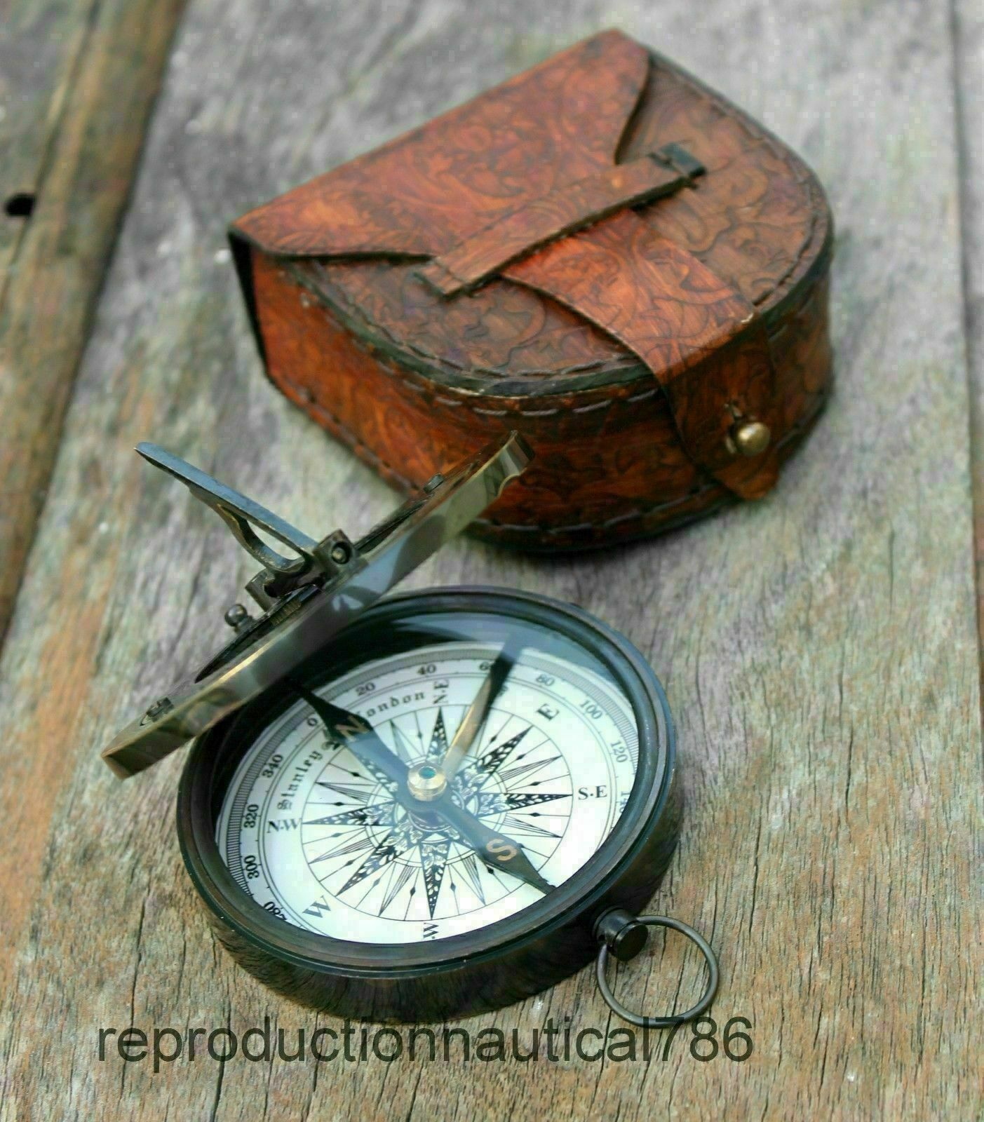 - Bussola di lavoro antica in ottone massiccio astrolabio nautico con...