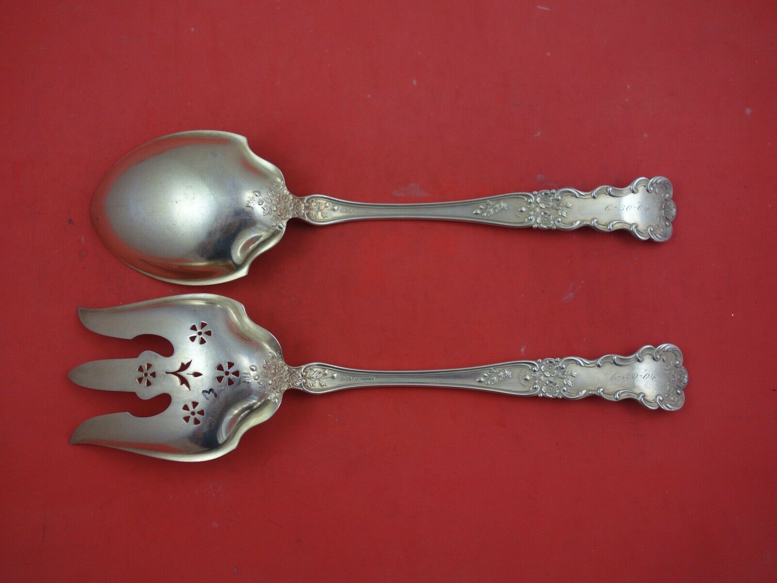 Sterling silver Salad Serving Set Gold Wash Long 10 1/2" in the pattern Buttercup by Gorham. It is not monogrammed and is in excellent condition.