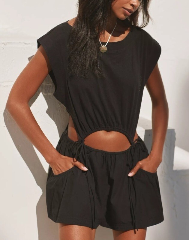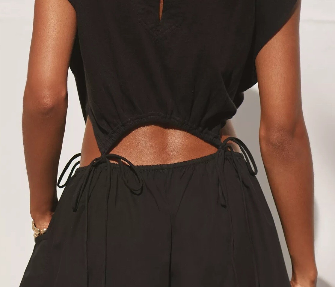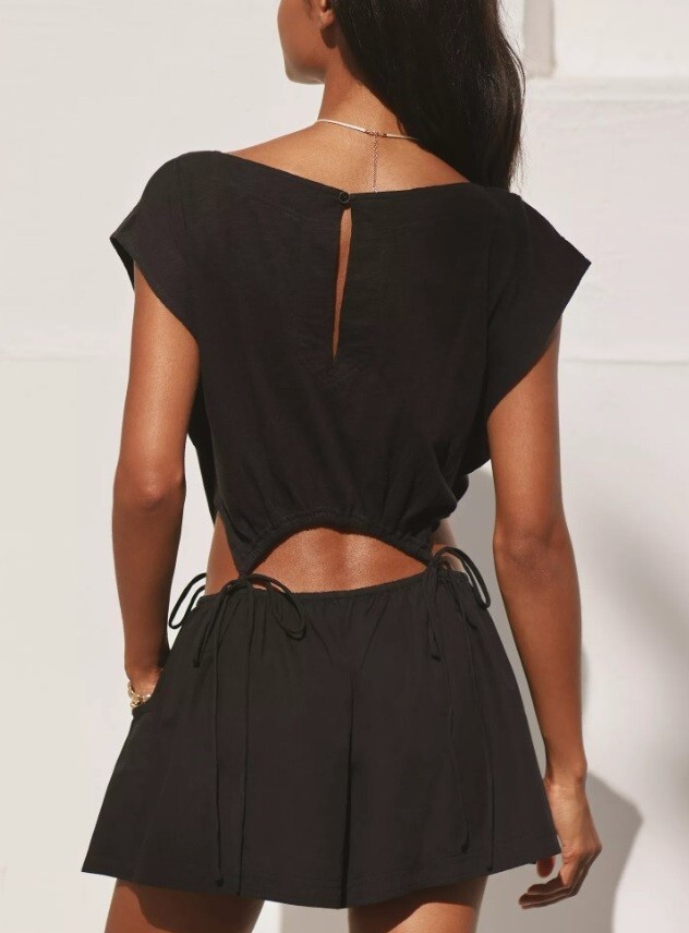 By Anthropologie The Last Light Cutout Romper 1-Piece Shorts, Size S Black NWOT