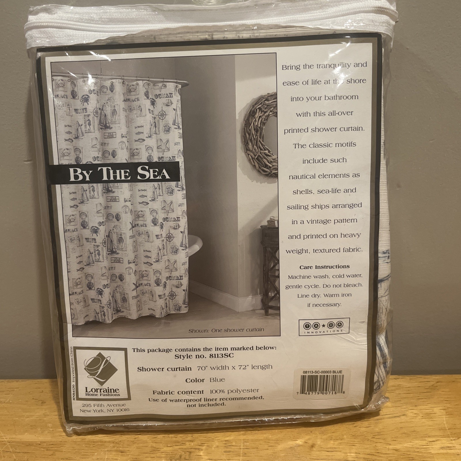 - By The Sea Lorraine Home Fashions Fabric Shower Curtain 70x72" Nautical NIP