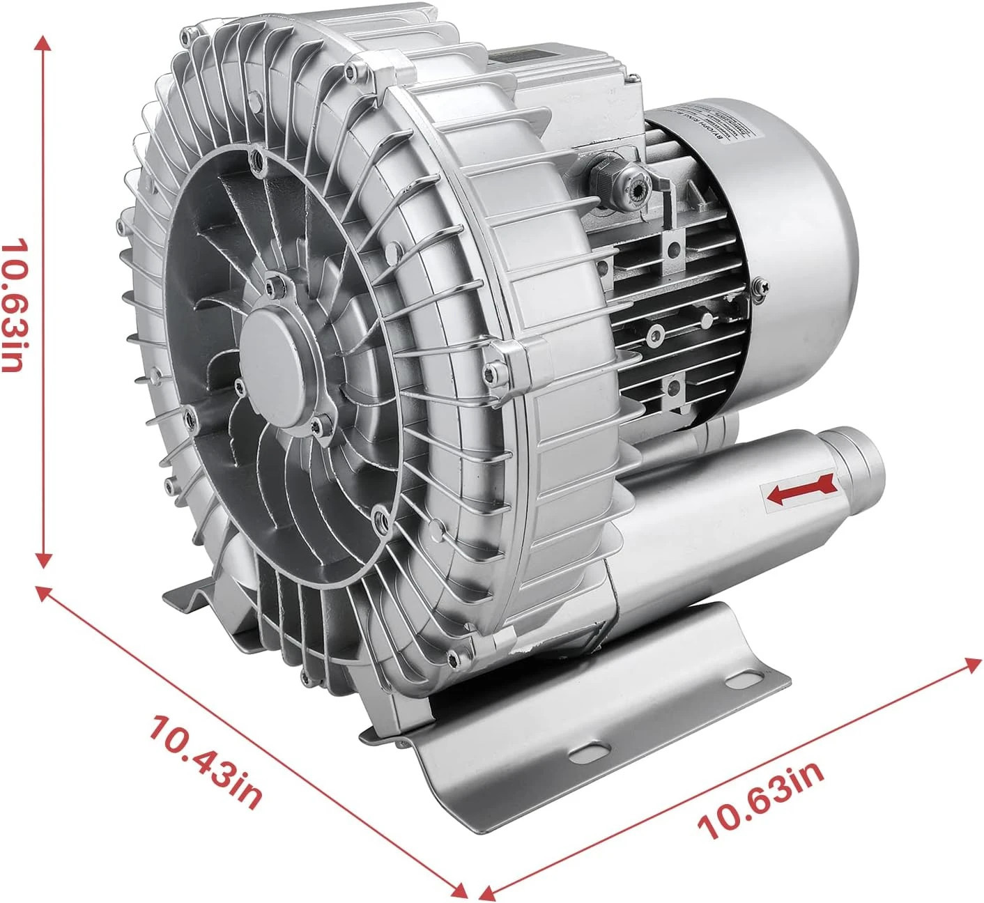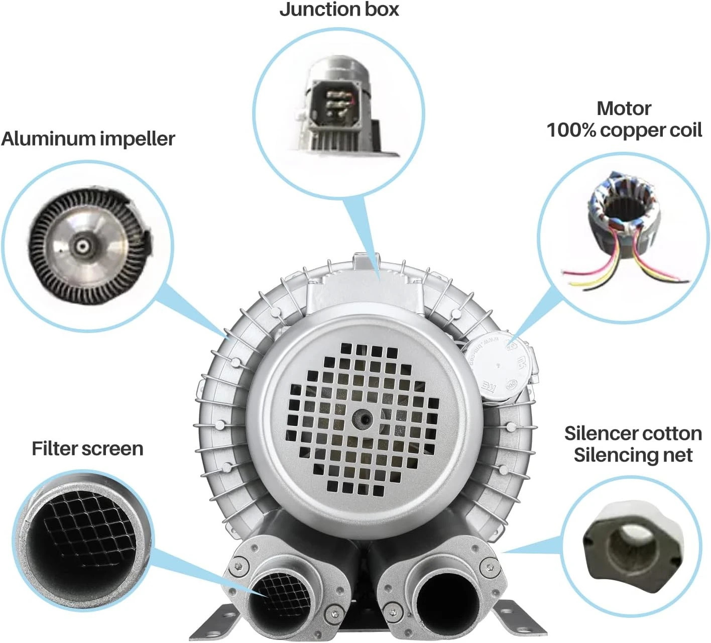 High-quality Ring Blower - Our blower is made of Aluminum Alloy Casting Iron, precise and firm, fire and corrosion resistance, good heat dissipation and long service life. 110 Voltage Single Phase 60Hz, Max Pressure: 190 mbar, Max Vacuum: -130 mbar, 41CFM.