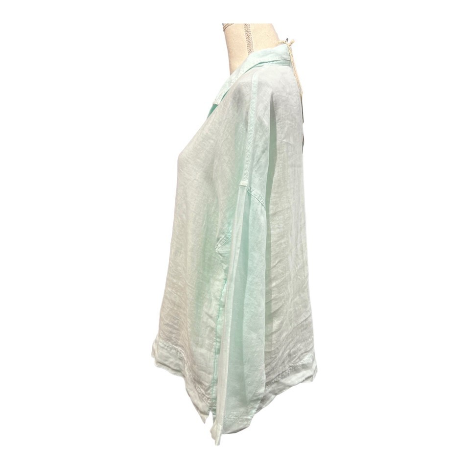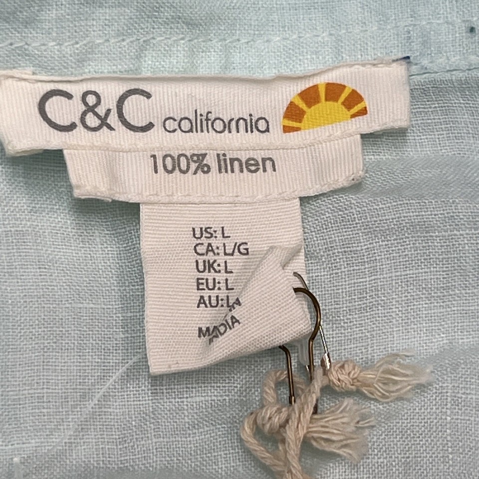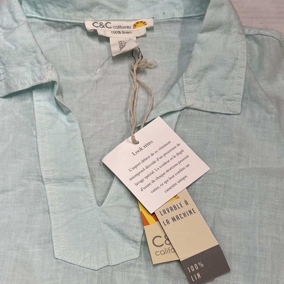- C&C California Top L Womens Green Linen Pullover VNeck Coastal Beachy Lagenlook