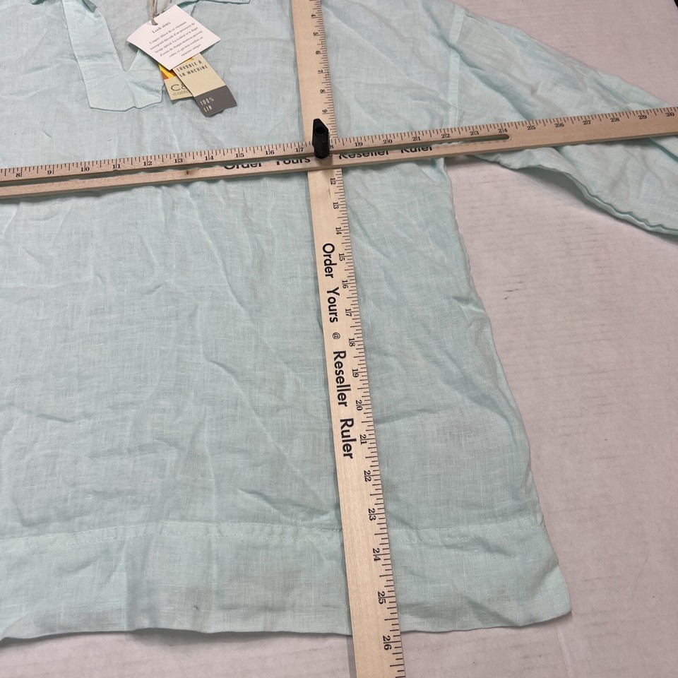 C C California Top L Womens Green Linen Pullover VNeck Coastal Beachy Lagenlook
