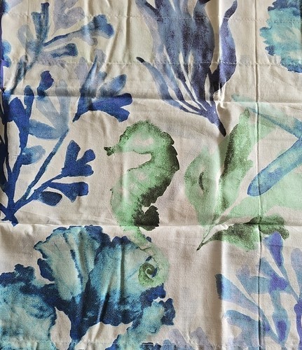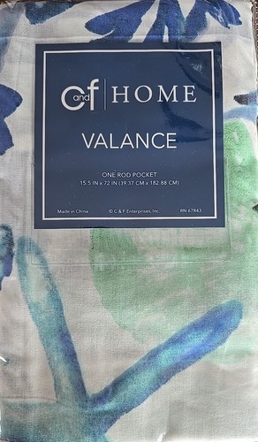 This Sale is for One (1) C and F Home Window Valance BLUEWATER BAY Seahorse ~ Starfish ~ Sea Shell Pattern Multicolored (greens blues) Valance measures approximately 72" wide x 15.5" long Rod pocket top for easy hanging 100% Cotton Machine wash ~ Tumble dry Valance is new in the original packaging Please view photos for a good description of this valance Thank you!