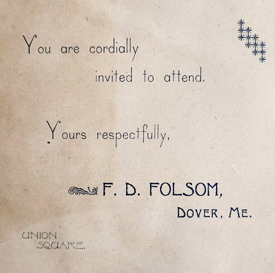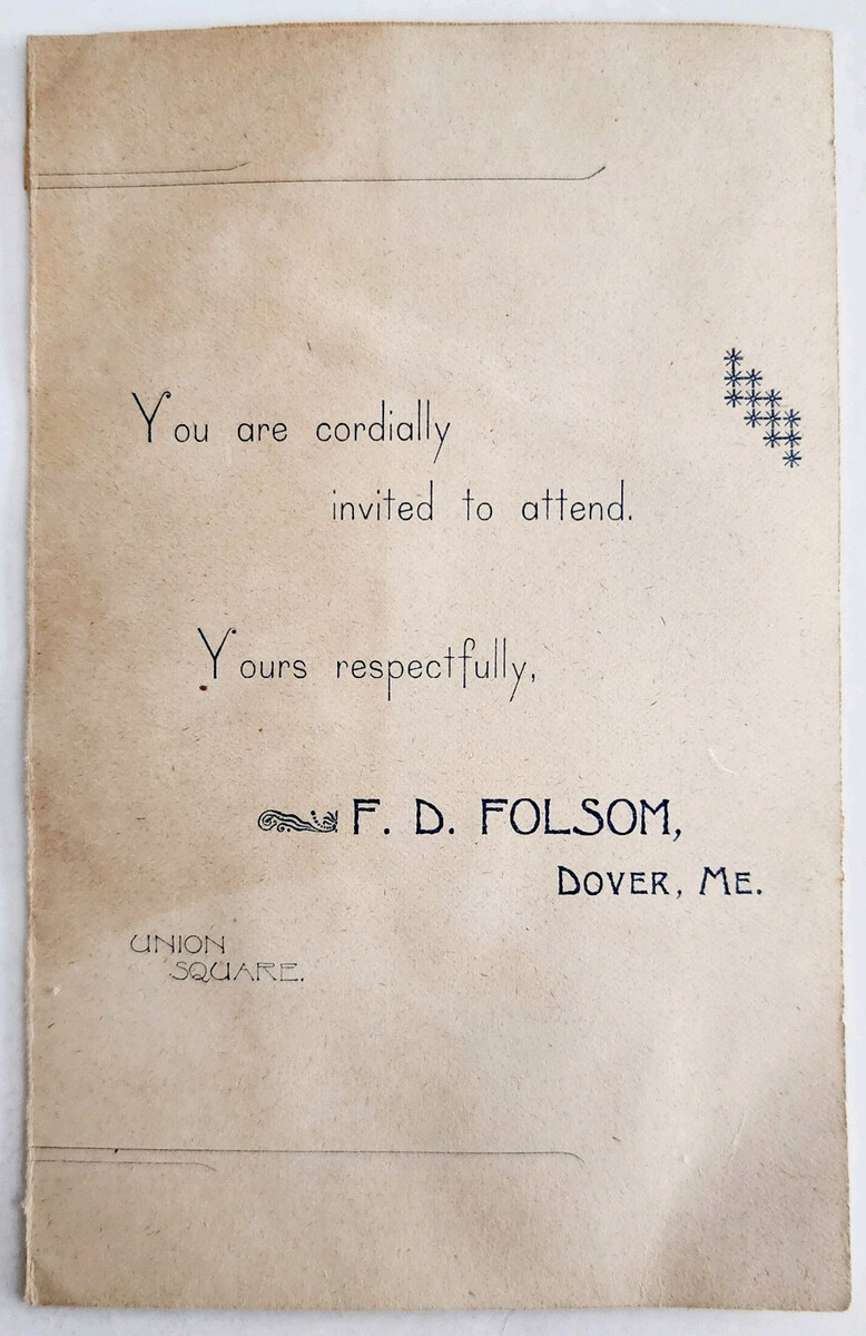 C1880s Invitation Card Half F.D. Folsom Dover Maine Victorian Union Square E98C