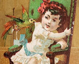 Primary image for C1890s Victorian Trade Card Lovely Child Parrot Pet Lithograph Antique Gold E98D