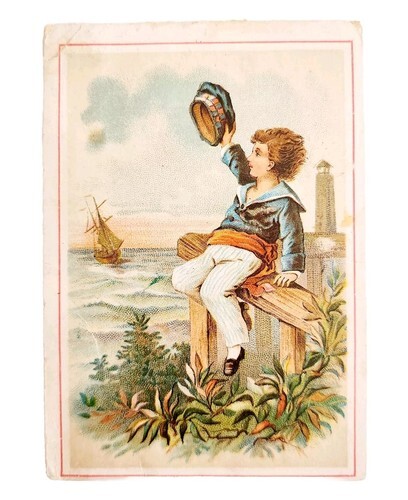 C1890s Victorian Trade Card Sailor Boy Nautical Lithograph Ephemera E83A