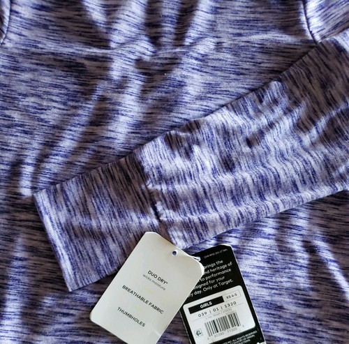 This sale is for one (1) C9 Champion brand pullover top Girl's size extra small (XS 4-5) Long sleeve top with thumb holes on sleeve cuff Purple white heather in color (Lilac Wash) K9570 Duo dry ~ Wicks moisture Breathable Fabric Thumb holes 85% Polyester ~ 10% Rayon ~ 5% Spandex Machine Wash ~ Tumble Dry This top is brand new with tags Please view photos for a good description of this item Thank you!