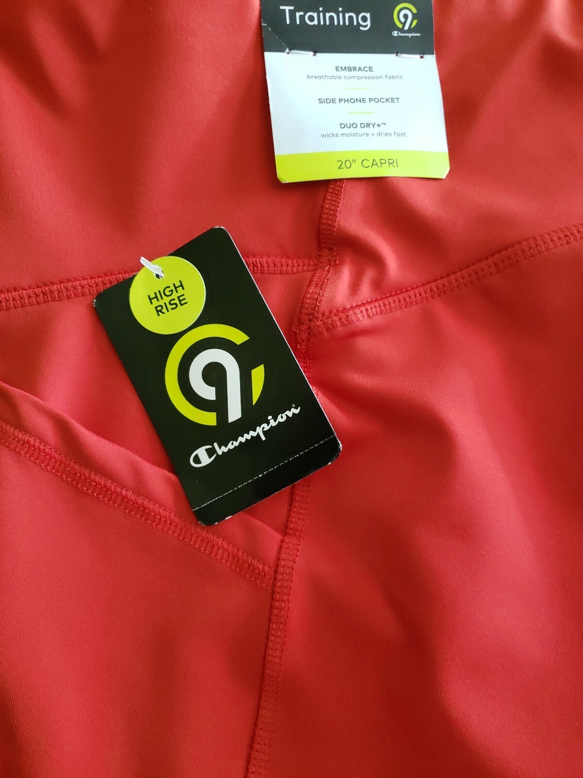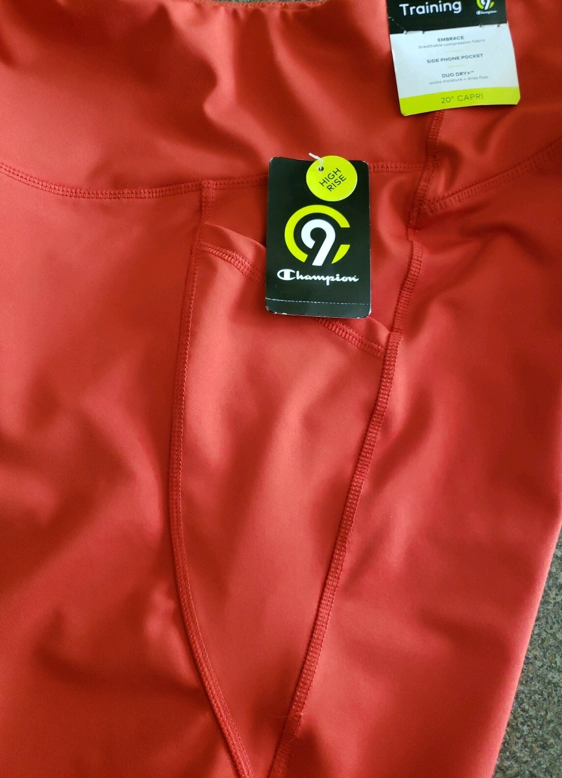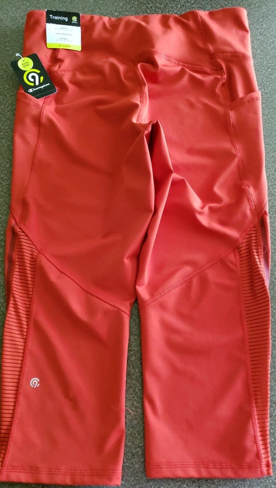 This sale is for one (1) pair of Women's Training Capri Pants Russet Clay in color Women's Size XS 20" inseam High Rise Duo dry ~ moisture-wicking fabric ~ dries fast Breathable compression fabric 85% Polyester ~ 15% Spandex Stretch One (1) side phone pocket Machine wash ~ Tumble dry These pants are brand new with tags Please view photos for a good description of this item Thank you!