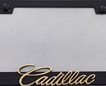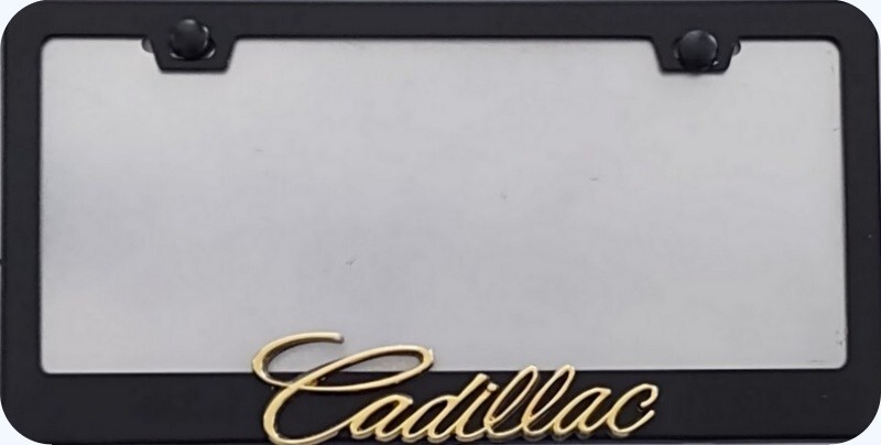 Cadillac 3d gold script license frame is a durable and chip-resistant accessory suitable for your Cadillac. Made from black stainless steel, it features a screw-on attachment type. With its sleek black finish it adds a personalized touch to your vehicle's front or rear. Included caps and mounting screws.