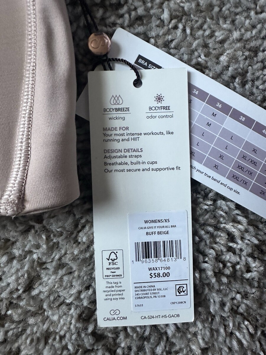 CALIA Women's Give It Your All Bra Buff Biege Size XS Light Padded