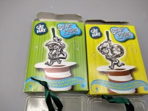 Primary image for CAT IN THE HAT--silver plated classic ornaments Lot Of 2
