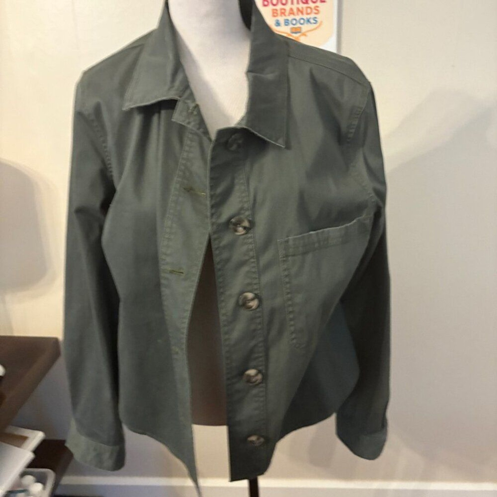 - CAbi Crossroads Utility Jacket #5298 – Army Green Shacket Size M