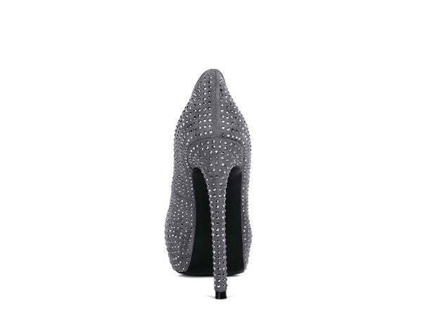 CLARISSE Diamante Faux Suede high Heeled Pumps