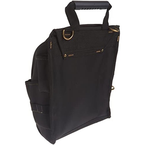 Product Description CLC Custom Leathercraft 1509 Zippered Professional Electricians Tool Pouch, 21 Pocket -- At a GlanceCombination of 25 pockets and sleeves provide a wide range of tool and parts storageEasy-grip, double-pull, main-pocket access zipper helps keep tools secureSmall zippered pocket in top flap and large zippered pocket around backElectrical-tape loop and hammer holderAdjustable, padded shoulder strap (can be removed for attaching the pouch to your belt)Soft-grip rubber handle for easy transportDurable yet lightweight poly-fabric material with poly-ballistic bindingMain pocket measures 4-1/2 by 9 by 9 inches (LxWxH)Tool pouch with exterior holders for a hammer, wrench, electrical tape, and more. View larger.Top flap unzips and folds out of the way for easy access. View larger.CLC 1509 Professional Electrician's Tool PouchPacked with features, the CLC 1509 electrician's tool pouch offers a dependable solution for utility technicians, electricians, maintenance/repair workers, and the general handyman--anyone who needs to keep their tools close at hand while having their hands free.Conveniently CompartmentalizedThe zippered top flap on the tool pouch prevents tools from spilling out when not in use and helps keep them secure when moving around the job site, whether climbing, crawling, or maneuvering through tight spaces. Zipped open, the top flap stays out of the way and in place with a hook-and-loop strapped connection. The tool pouch provides eight pockets to keep tools neatly organized.Ruggedly BuiltThe CLC 1509 tool pouch features durable polyester-fabric construction with poly-ballistic binding for reliable, high-quality performance. Even more, the tool pouch comes equipped with ergonomic rubber handles and a shoulder strap with air-mesh padding, which is also used on the back side of the pouch to help reduce heat build-up and increase comfort.Please Note: Tools shown in the images of the tool pouch are not included. Tool pouch only.Side and Back Views...Rugged polyester fabric construction. View larger.Hook-and-loop flap closures help keep tools in place. View larger.Large zippered pocket around back for additional storage. View larger. From the Manufacturer The 1509 21 Pocket Zippered Professional Electricians Tool Pouch from Custom LeatherCraft has a zippered to flap to prevent spillage of tools when not is use. It is made of double layered rugged, lightweight 600D polyester fabric. It is extra padded on the back for more comfort. The zippered back pocket is perfect for an 8 x 5 writing pad with an outside pocket to hold a cell phone. The 1509 has 3 large outside screwdriver holders along with a metal hammer holder, tool snap, and web tape strap. The Ergonomic rubber handles and padded shoulder strap design makes the 1509 an easy storage tool bag and the ideal way to carry a loaded pouch.